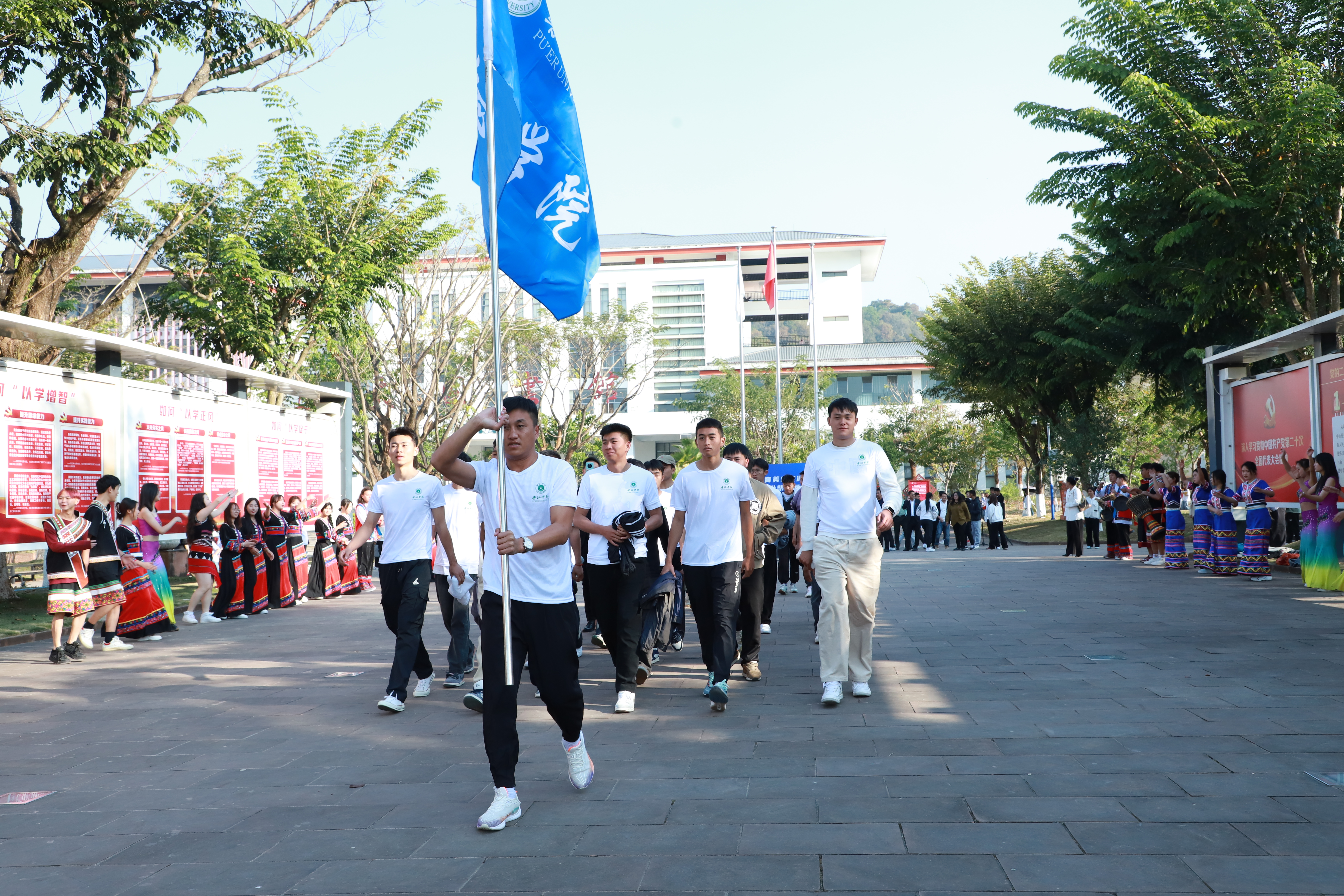 普洱学院党政办公室、党委宣传部、学生工作处、教务处、团委、融媒体中心主要负责人,体育学院、艺术学院科级及以上干部,体育美育浸润行动计划第二批帮扶团队全体教师、学生,普洱学院体育学院、艺术学院学生代表参加仪式。