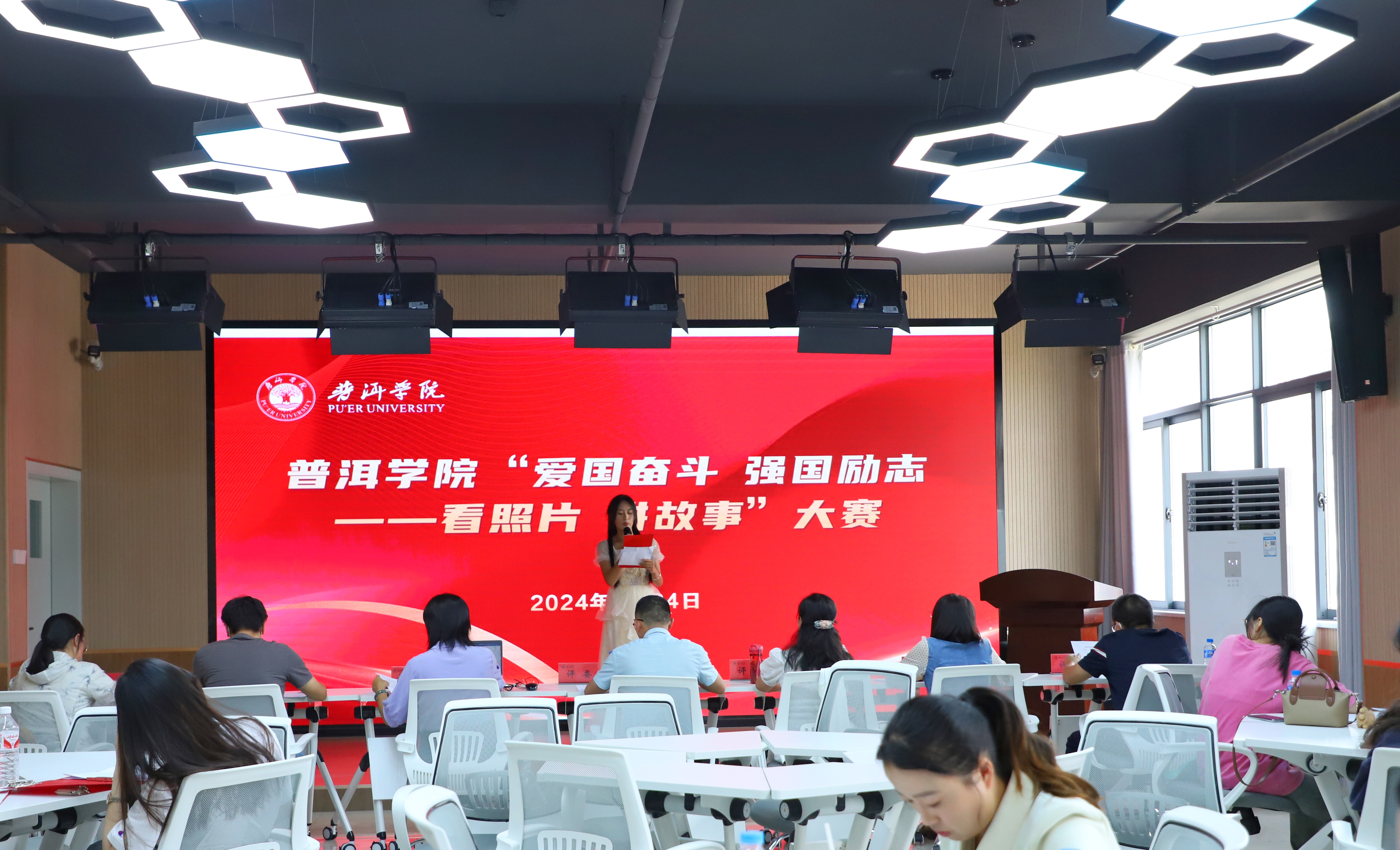 4月24日,普洱学院举行“爱国奋斗 强国励志——看照片 讲故事”大赛,着力讲好中国故事,传播中国好声音,引导大学生进一步坚定理想信念,提升大学生成长发展核心素养。党委副书记吴琳,宣传部、团委、融媒体中心等部门负责人出席大赛决赛。