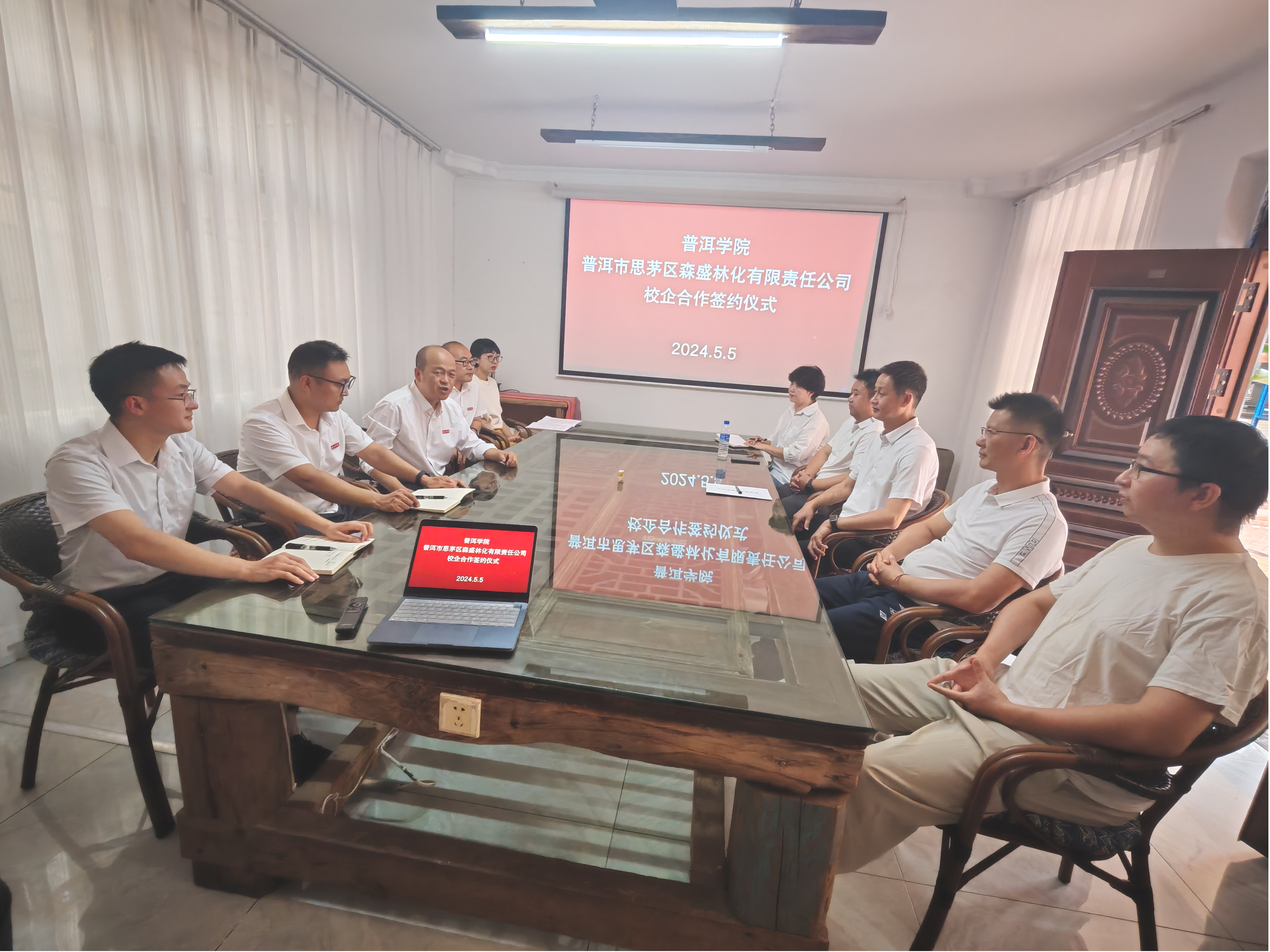 普洱学院相关部门、二级学院负责人,相关研究团队成员;森盛林化有限责任公司相关负责人参加签约仪式。