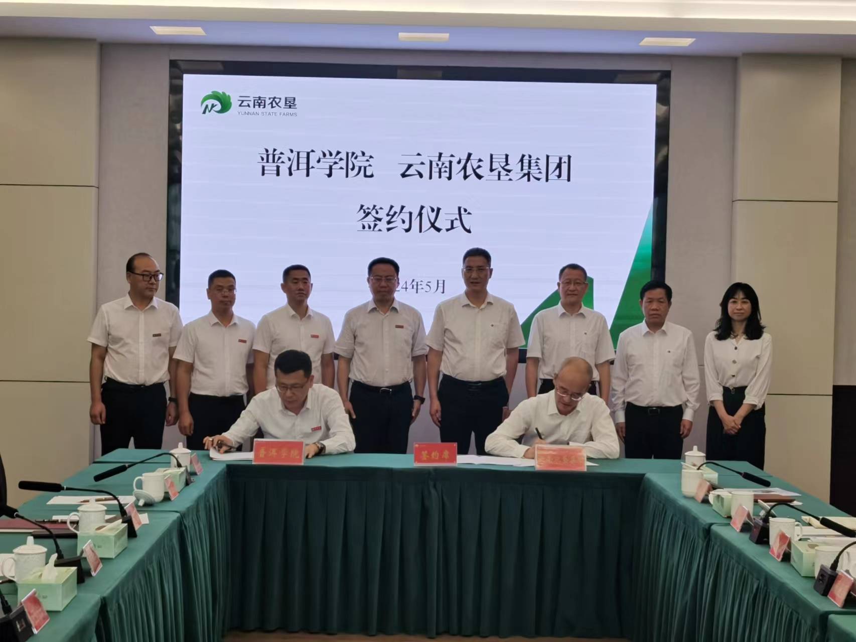 5月21日下午,普洱学院党委书记胡国云,党委委员、副院长李祖军、田洋率相关部门负责人到云南农垦集团有限责任公司(以下简称“云南农垦集团”)开展“访企拓岗促就业”专项行动,并签署战略合作框架协议。双方将围绕构建校政企协同育人平台、共建茶学和咖啡类特色专业、开发和建设课程、共建产教融合实习实训基地、共建产学研服务平台、创新创作、国际合作、学生及职工培养等方面展开合作。