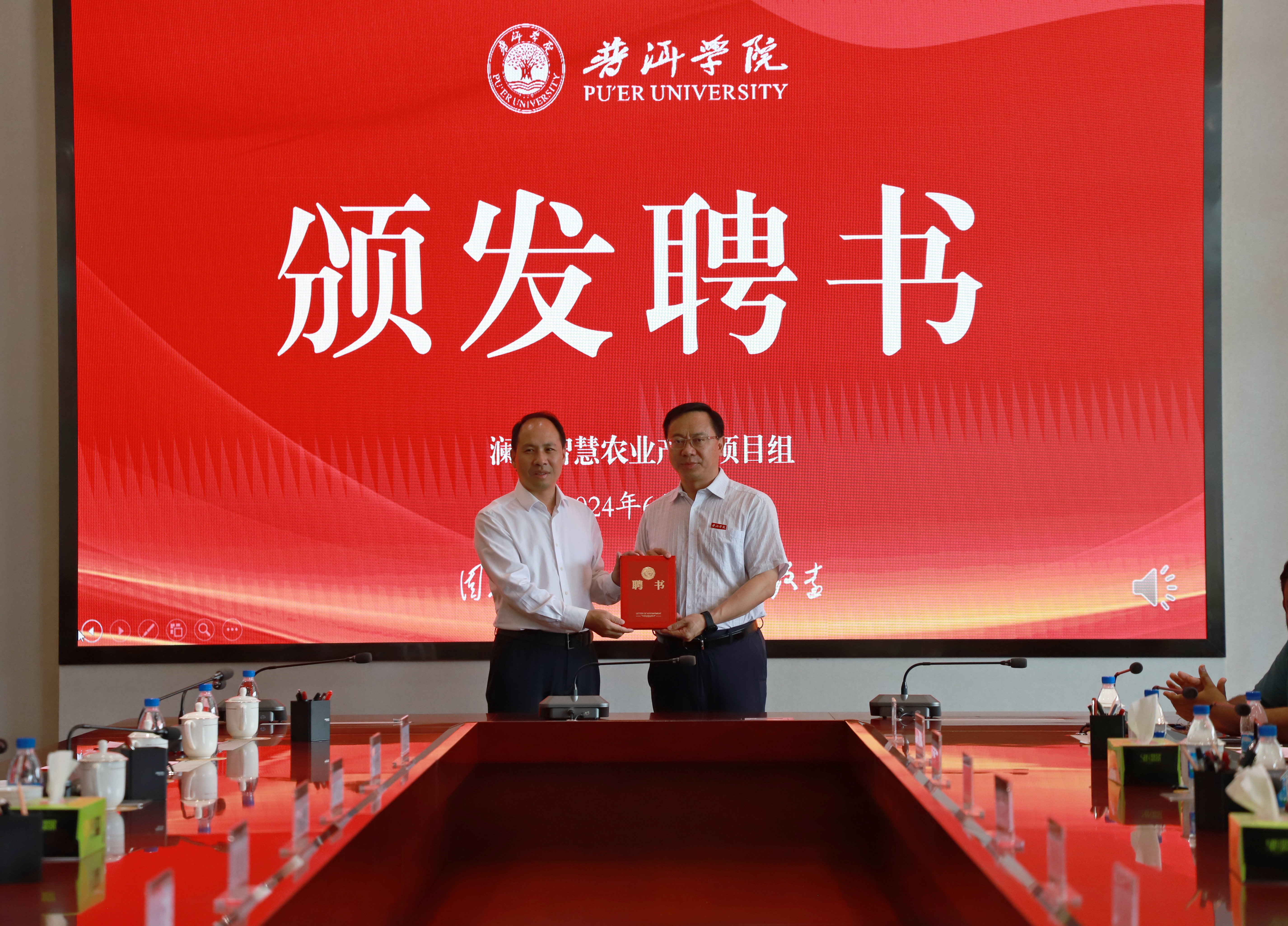 6月6日下午,云南省首批人才工作示范项目“面向澜湄流域国家的产业人才培养基地建设示范”“普洱学院智慧农业学科发展研究”“澜湄智慧农业国际数字人才联合培养项目”“澜湄智慧农业产业新质数字人才链普洱学院人才总站”“普院澜湄精英创新站/班” 课题启动暨专家聘任仪式在普洱学院图书馆一楼会议室举行。