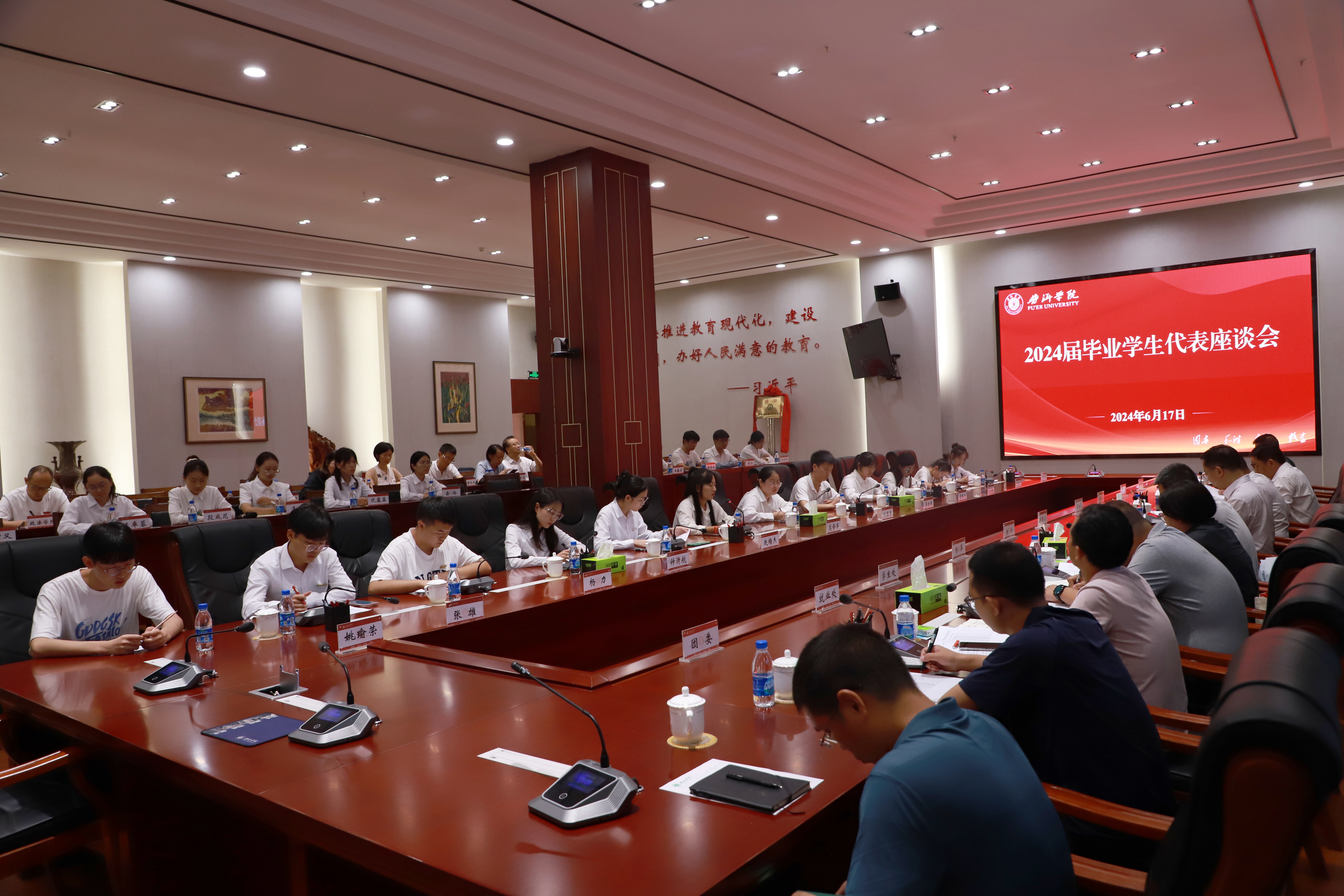 普洱学院党委委员,有关部门负责人,各二级学院教师代表,2024届毕业生代表参加座谈会。