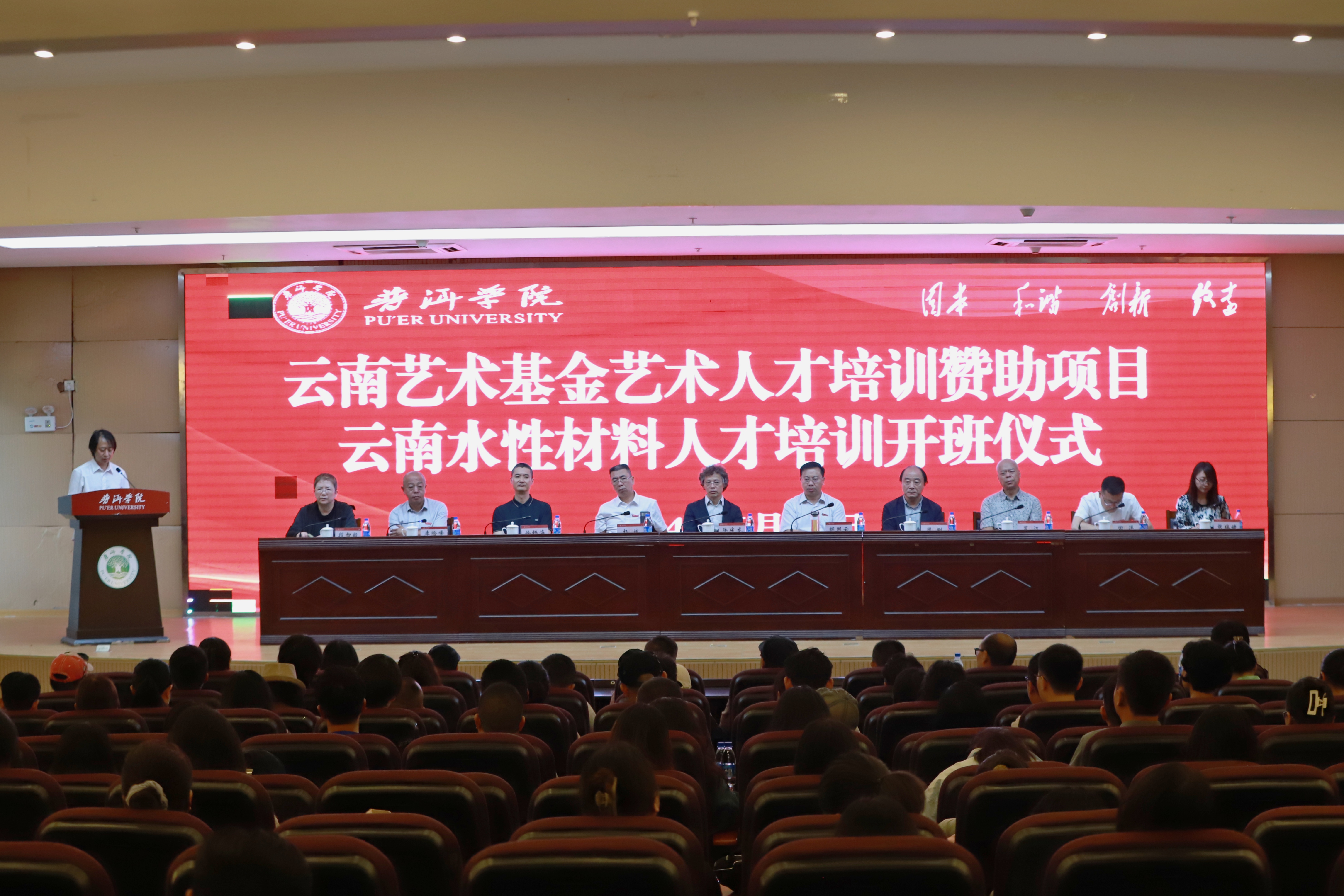 6月25日,普洱学院举行云南省艺术基金艺术人才培养资助项目云南元素水性材料绘画创作人才培训班开班仪式,普洱学院党委书记胡国云,院长杨斌,党委副书记李险峰,党委委员、副校长田洋;中国美术家协会副主席、南京大学艺术学院副院长陆庆龙,第五届中国美协水彩画艺委会副主任、中国美院水彩研究室主任周刚;云南省民族艺术研究院院长、云南省艺术基金管理领导小组办公室主任徐畅海,云南省文联副主席、云南省美术家协会主席罗江;昆明学院美术与艺术设计学院院长段智毅,云南省民族艺术研究院艺术管理中心副主任张瑞婕出席开班仪式。李险峰主持开班仪式。
