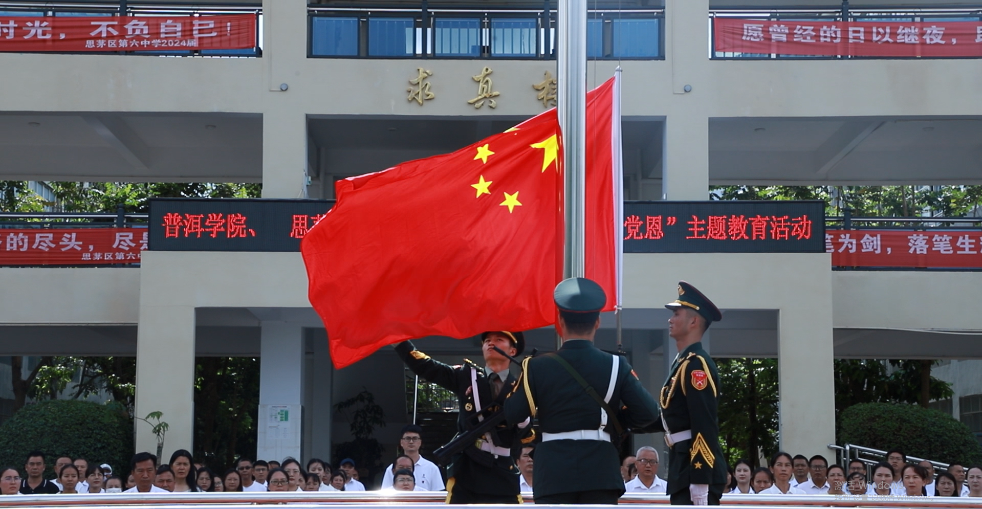 普洱学院国旗班成员及师生代表,思茅六中全体师生,思茅四小师生代表参加活动。
