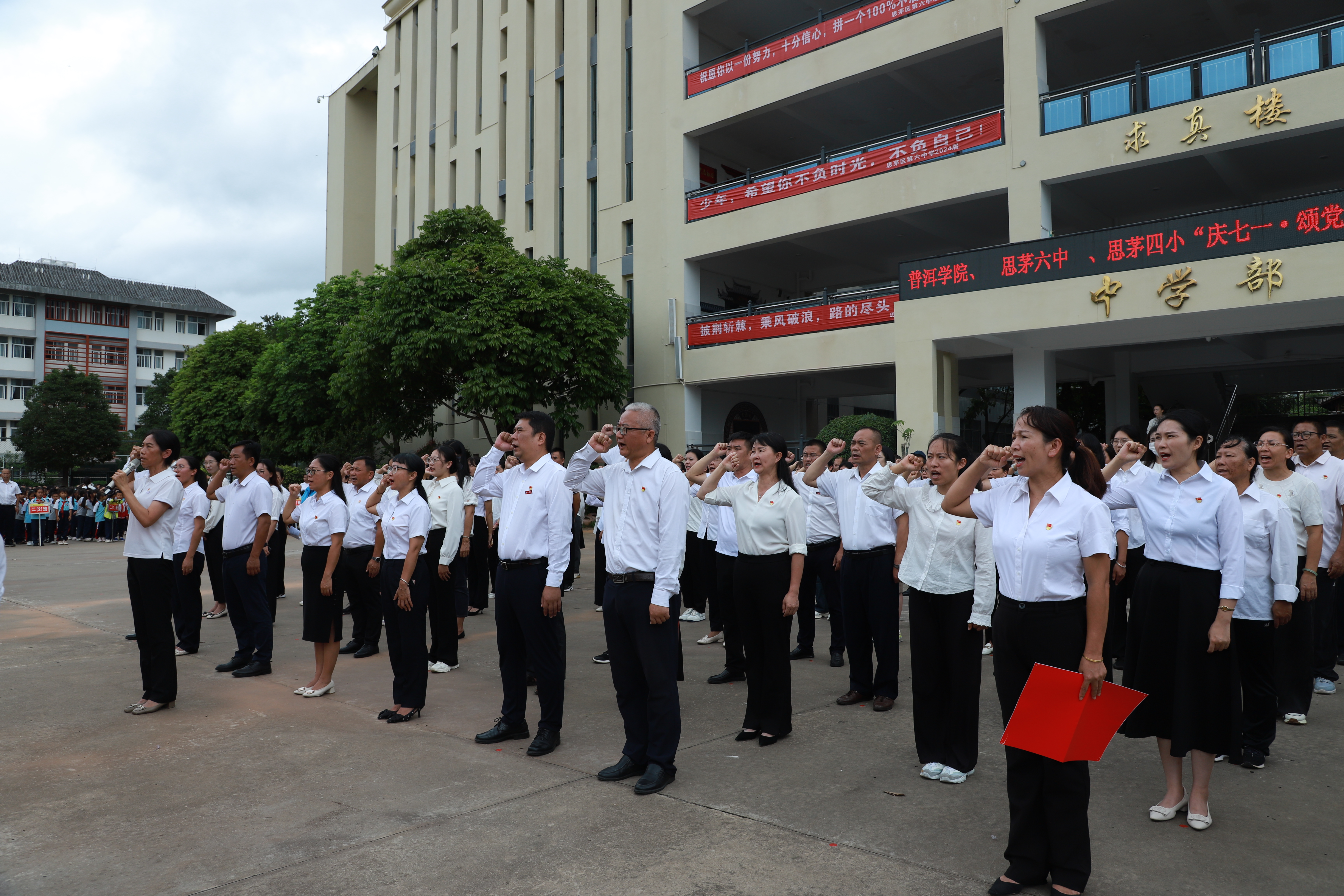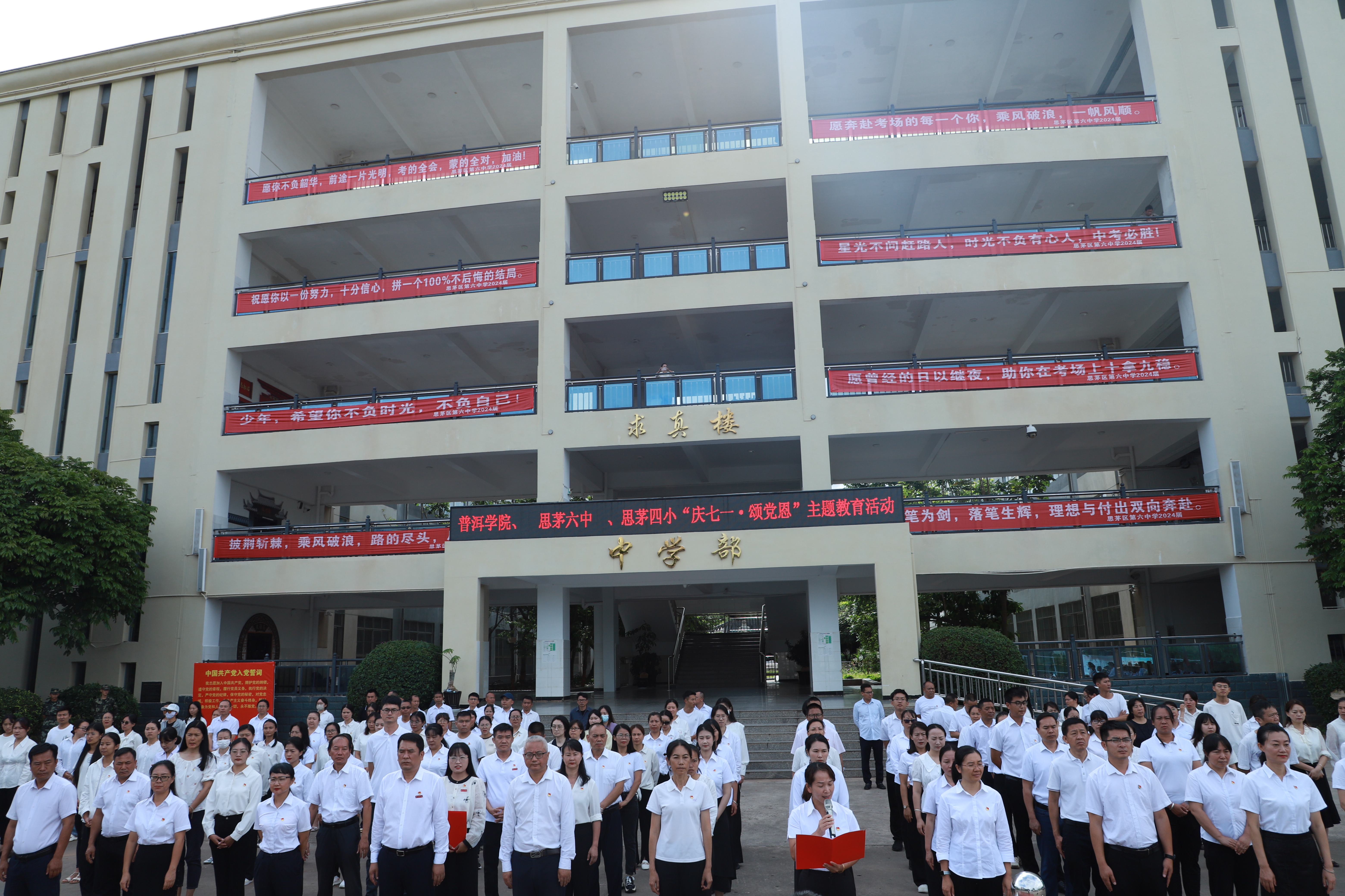 为深入学习贯彻习近平总书记对学校思政课建设作出的重要指示精神,继承和弘扬伟大建党精神,引导师生坚定不移听党话、跟党走,激励学生争做有理想、敢担当、能吃苦、肯奋斗的时代新人,在中国共产党成立103周年之际,普洱学院联合思茅六中、思茅四小开展普洱市大中小学思政教育一体化系列活动第三期——庆“七一”主题教育研学活动。思茅六中党总支副书记张叶萌主持活动。