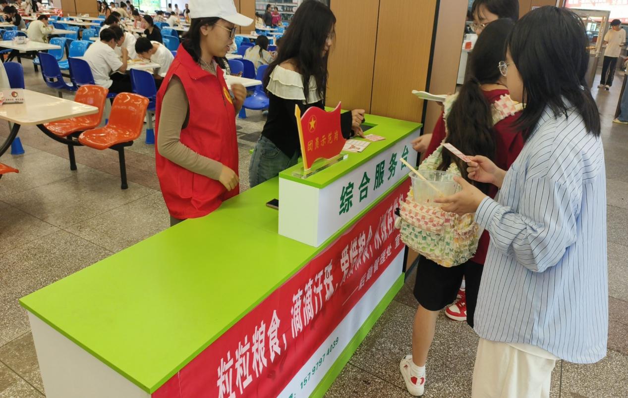 活动开始当天,现场气氛热烈。志愿者们积极地向师生们讲解活动规则,现场还设置了节约粮食猜字谜环节,增高活动参与度,师生们热情高涨,积极参与本次集章打卡活动。