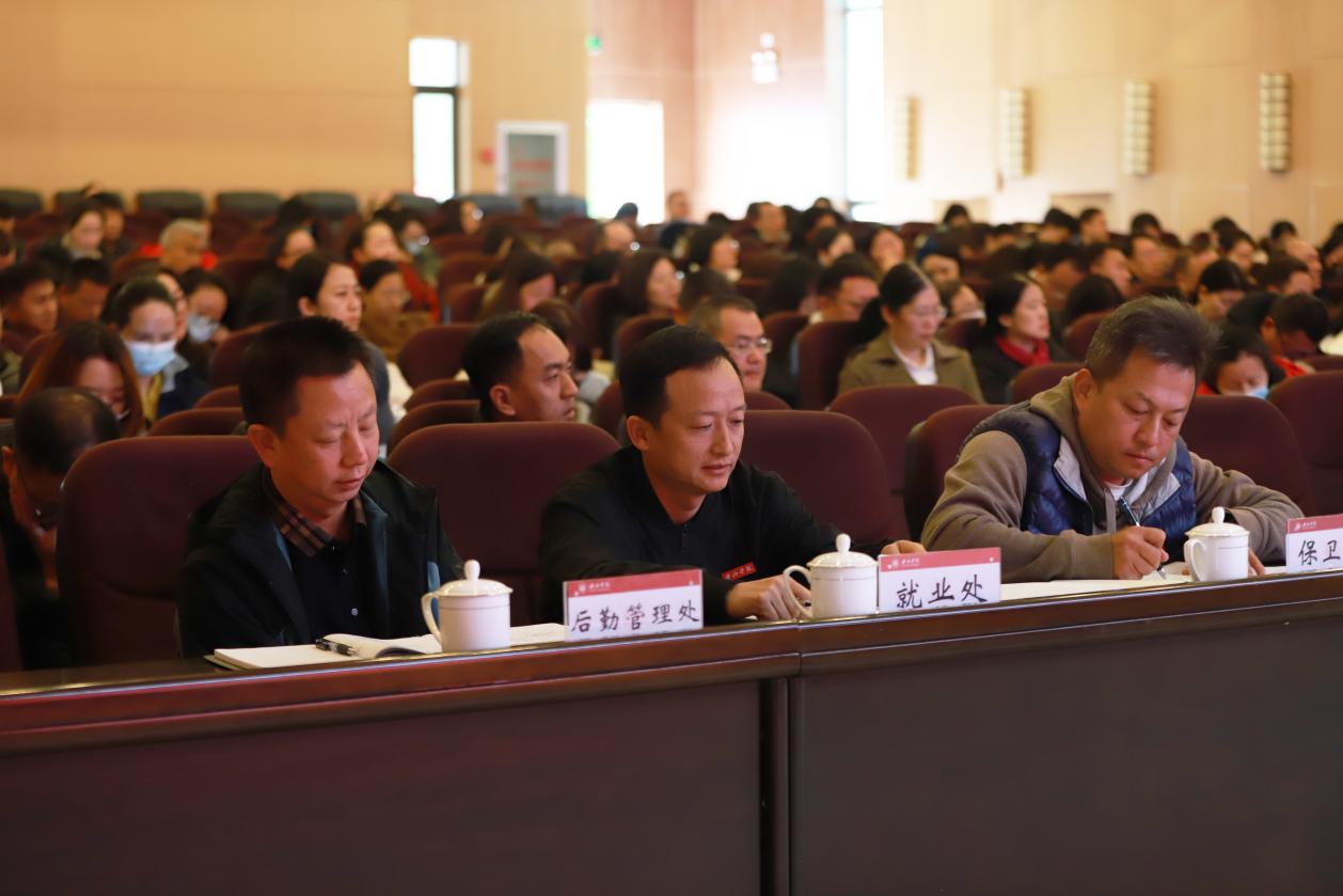 胡国云强调,要把握“时”与“势”,增强高质量发展的主动性,看清总体形势,辨明前行的方向,跟上发展的要求,合上时代的节拍,开创高质量发展新局面。要解放思想,强化高质量发展的先导力,解开束缚、打开视野、与时俱进、守正创新。要深化认知,提升高质量发展的信心,强化普院的发展只能靠普院人的认识,切实增强发展意识、竞争意识、忧患意识。要放眼全局,抓牢高质量发展的关键点,始终坚持目标导向、问题导向,牢固树立大安全观,打造高质量的本科教育,强化科研能力建设,加强人才队伍建设,提升服务地方发展能力。要坚持党建引领,夯实高质量发展的“压舱石”,建立战略规划“引”、二级单位“推”、宣传舆论“鼓”、监察机构“督”的长效机制,团结带领师生,抢抓机遇,砥砺奋进,凝心聚力,谱写学校高质量发展的新篇章。