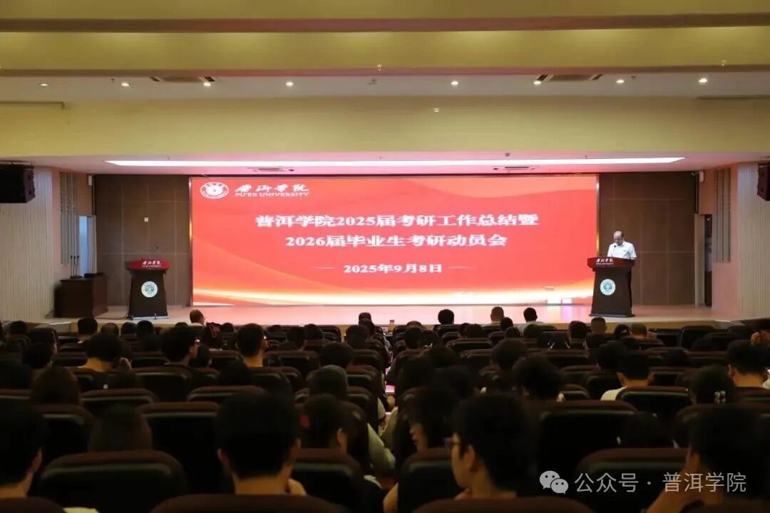 9月8日,普洱学院在图书馆报告厅召开2025届考研工作总结暨2026届毕业生考研动员会。会议旨在系统梳理过往考研工作的成果与经验,同时为即将踏上考研征程的2026届学子加油鼓劲、增添动力。院长杨斌出席并讲话,副院长陈勇主持,相关部门和各二级学院负责人,及2026届毕业生代表参加。