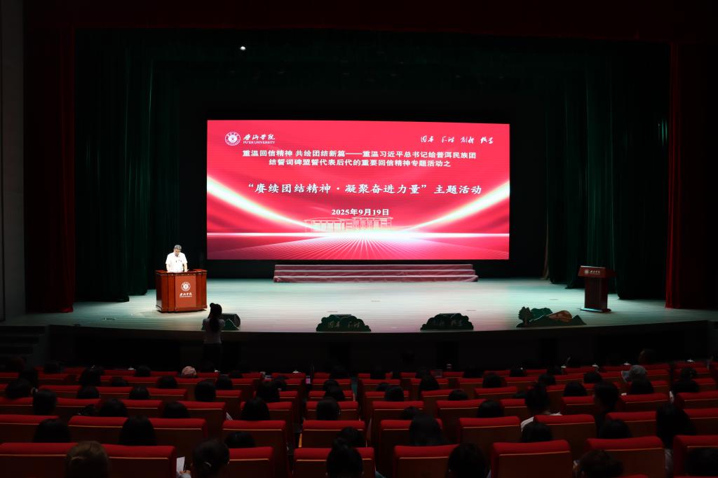 9月19日,在习近平总书记给普洱民族团结誓词碑盟誓代表后代回信一周年即将到来之际,作为普洱学院“重温回信精神 共绘团结新篇——重温习近平总书记给普洱民族团结誓词碑盟誓代表后代的重要回信精神”系列专题活动之一,以“赓续团结精神·凝聚奋进力量”为主题的《民族团结代代传》线下发布活动在演播厅举行