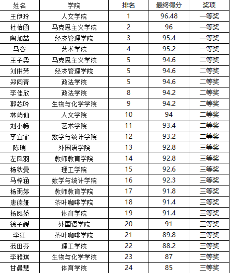 本次赛事设置一等奖4名、二等奖8名、三等奖12名,相关领导嘉宾为获奖选手现场颁奖,并向他们致以热烈祝贺。其中,获得一等奖的选手将推荐参加云南省高校“石榴红”杯铸牢中华民族共同体意识演讲比赛。