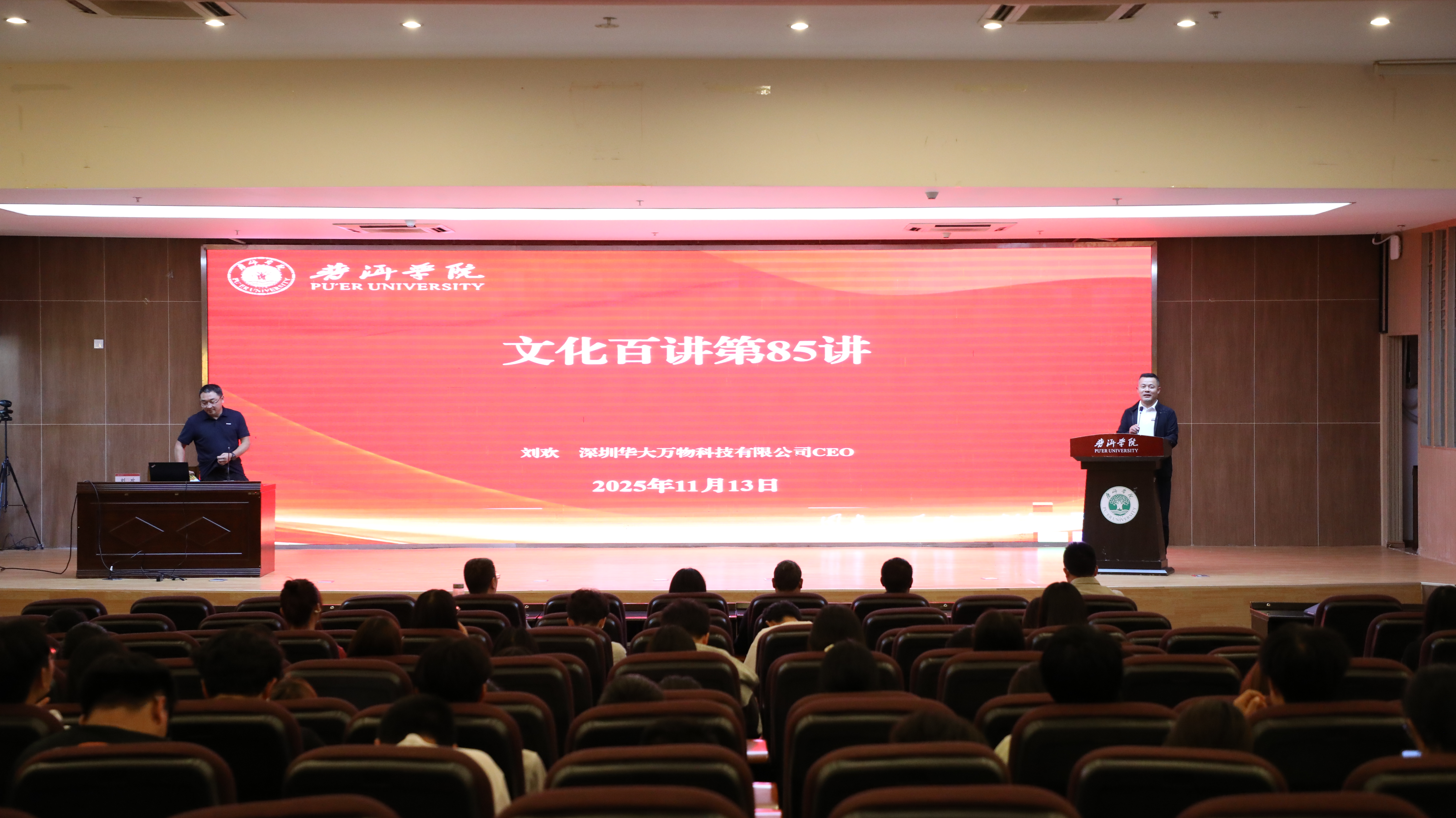 11月13日下午,普洱学院“文化百讲”第85讲在图书馆报告厅举行,邀请深圳华大万物科技有限公司首席执行官刘欢作《基因科技助力农业绿色健康发展》主题讲座。普洱学院院长杨斌出席。
