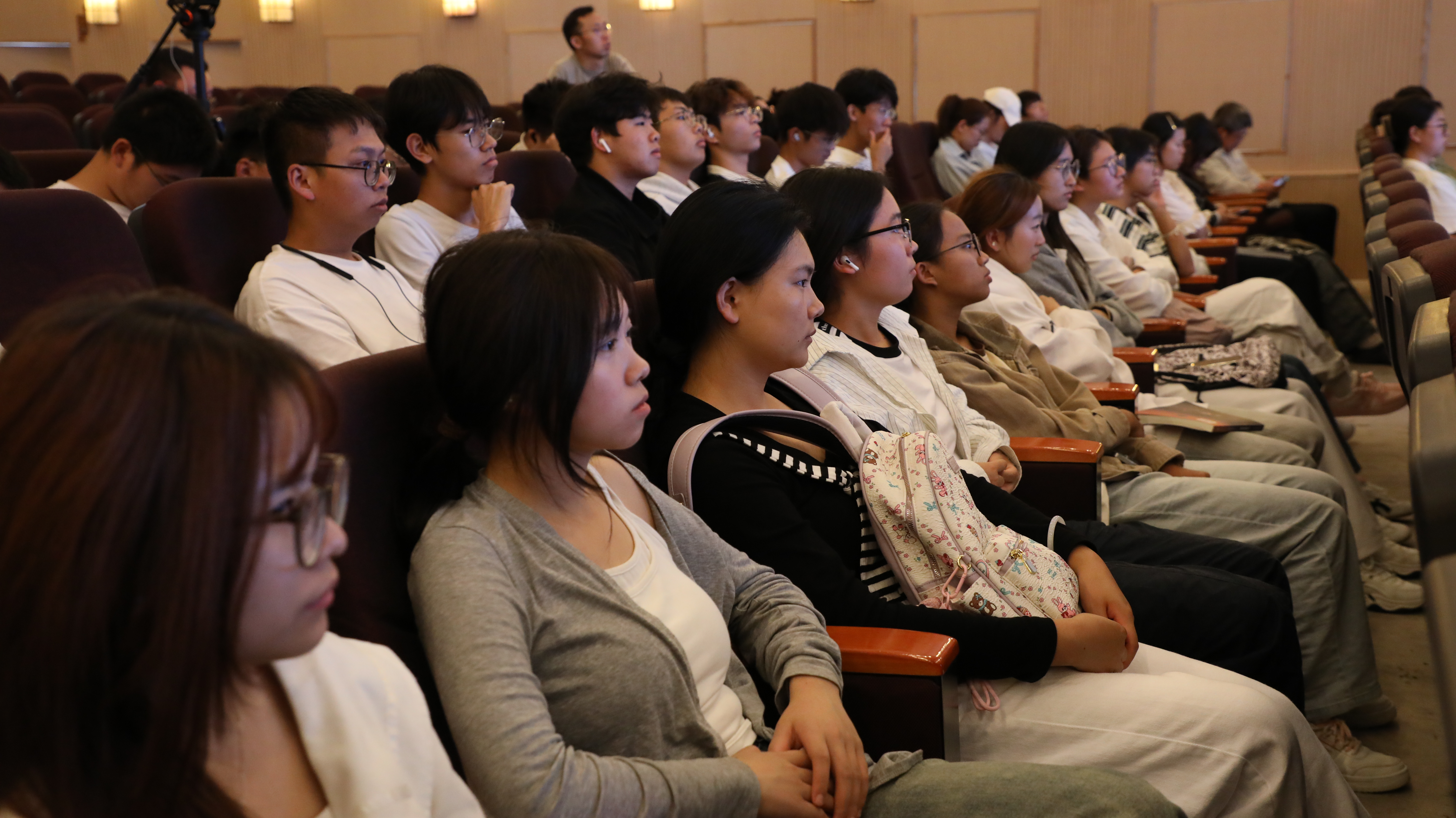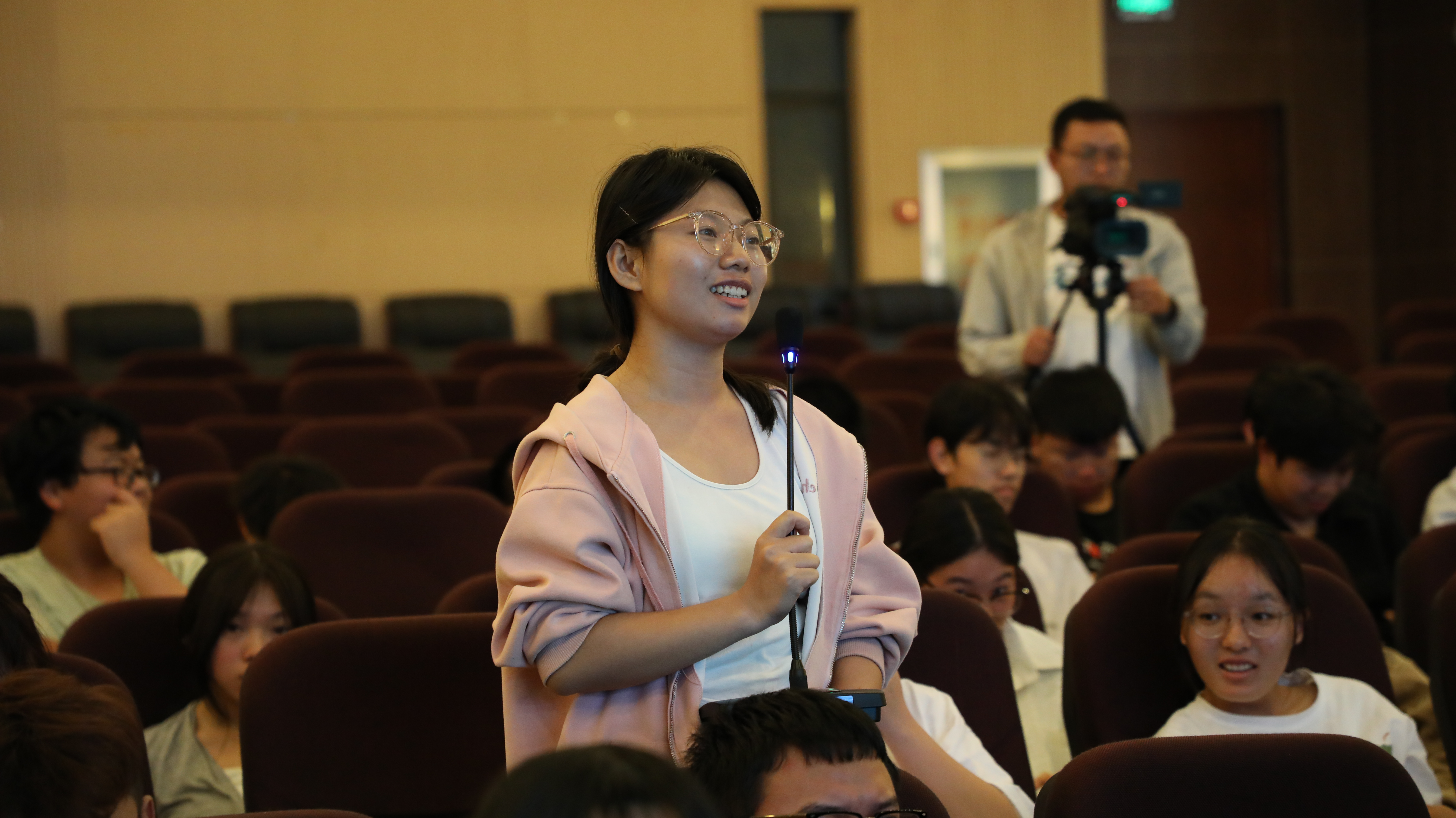在互动环节,现场师生踊跃提问,就基因技术的安全性、伦理规范、土壤微生物以及学生实习实践等问题与刘欢进行了深入交流。