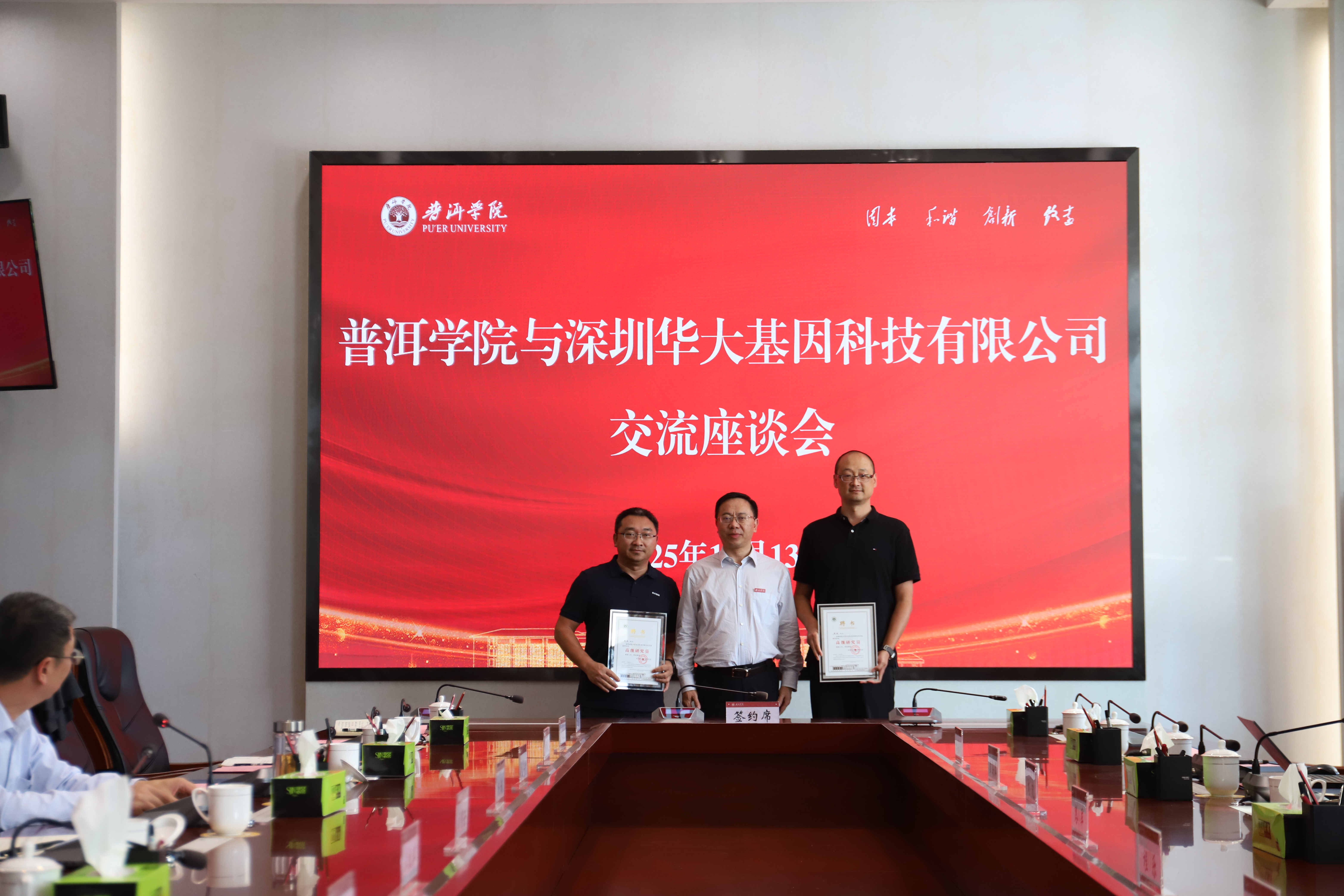 杨斌表示,当前普洱学院与华大基因合作正处于“资源+技术”深度融合的关键期,希望在既有合作基础上,进一步拓宽合作领域,聚焦生物产业,充分用好普洱市得天独厚的生物多样性资源,特别是在生物资源深加工领域拓展合作空间,通过明确阶段目标、畅通成果转化通道,将资源优势转化为产业优势,助力区域经济社会高质量发展。路军介绍了华大基因在生命科学研究等领域的突破成果。他表示,华大基因与普洱学院合作由来已久,“多宝茄树”种植研学项目取得阶段性成效。希望与普洱学院进一步深化在科研成果转化、人才联合培养、平台共建特别是咖啡、茶叶特色产业的基因研究与科技研发等方面的合作,培养适应产业需求的应用型国际化人才。