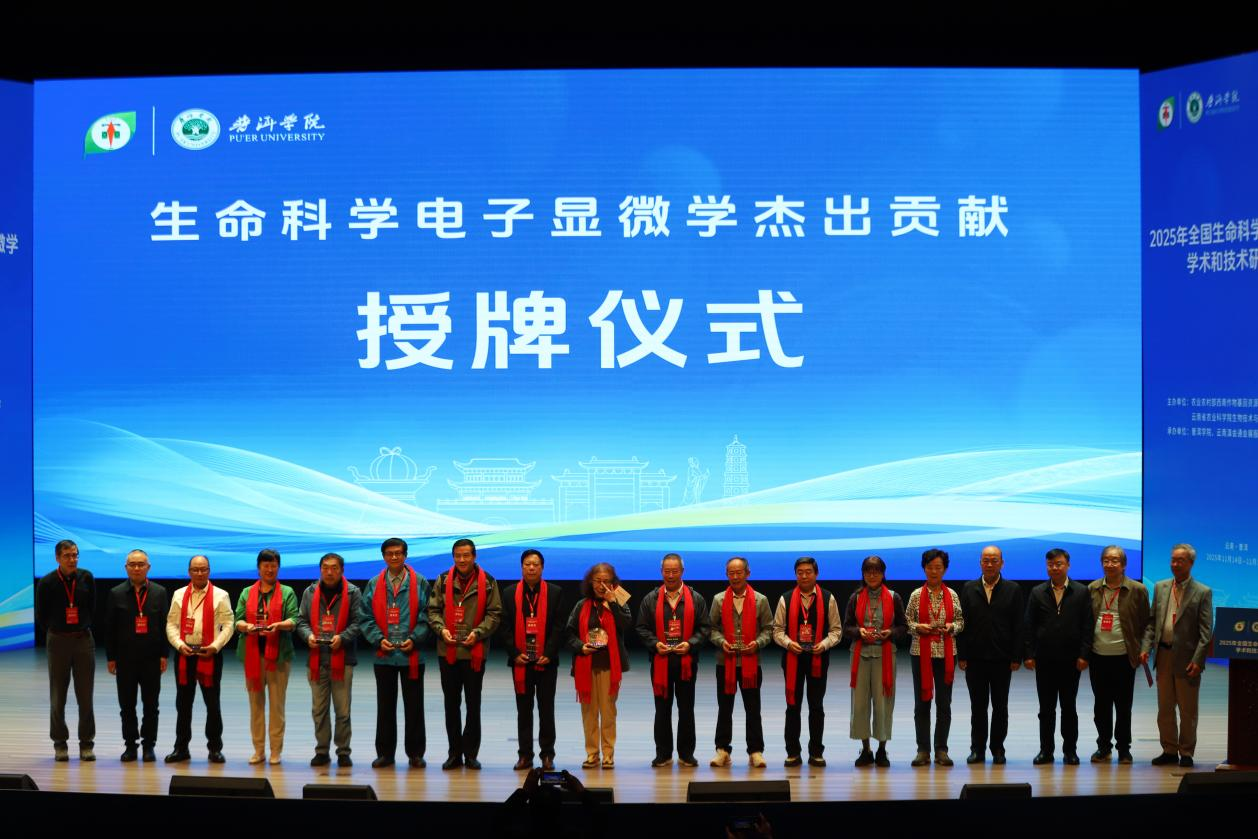 会上,宣布了杰出贡献人员名单;举行了中国生命科学电子显微学杰出贡献授牌仪式;宣读了颁奖词,获得杰出贡献奖的代表作了发言。