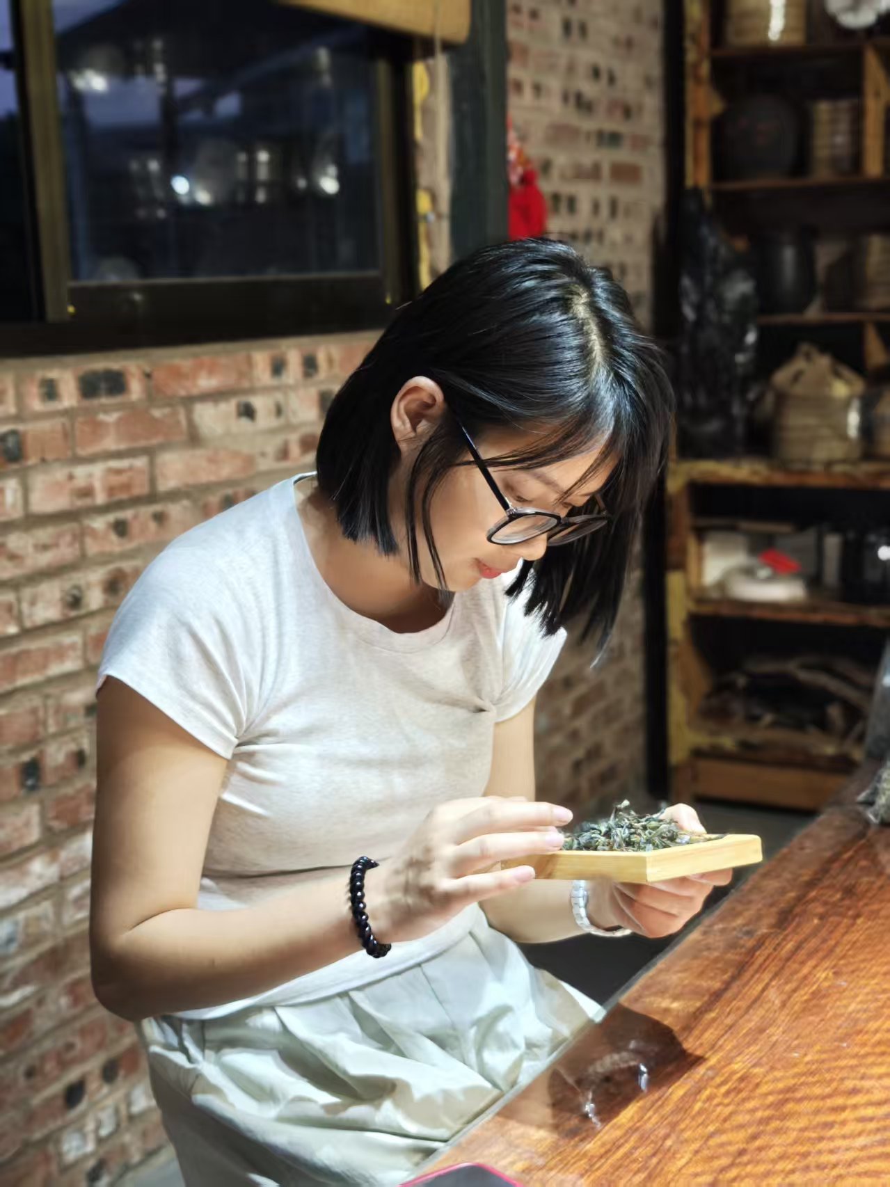 2019年毕业时,杜玉呈没有急于创业,而是选择“沉下去”。她先后走进茶源广场、普洱国际茶城,拜资深茶人为师,开启了长达一年的“学徒生涯”。“代码讲究精准,做茶同样需要极致的细节。”她跟着师傅学习辨识不同山头茶叶的风味差异,记录每一片茶叶从采摘、杀青到压饼的全过程,在炒茶锅边观察火候,在仓库里整理茶样,用理工生的“较真”劲儿积累味觉记忆。