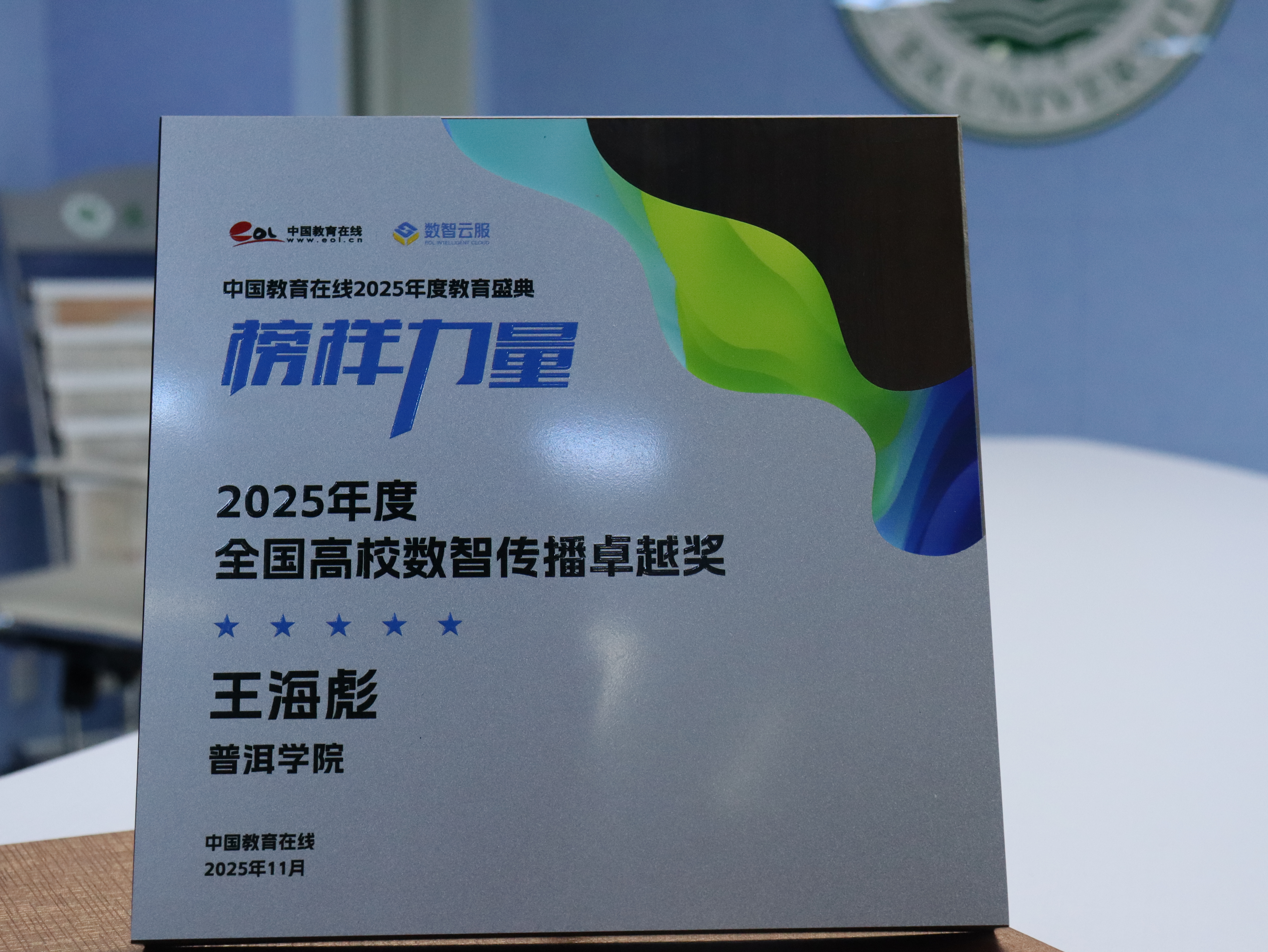 近日,中国教育在线“榜样力量·2025年度教育盛典”优秀案例名单正式公布。普洱学院宣传部王海彪老师凭借在高校数智传播领域的创新性实践和显著成效,荣获“2025年度全国高校数智传播卓越奖”。