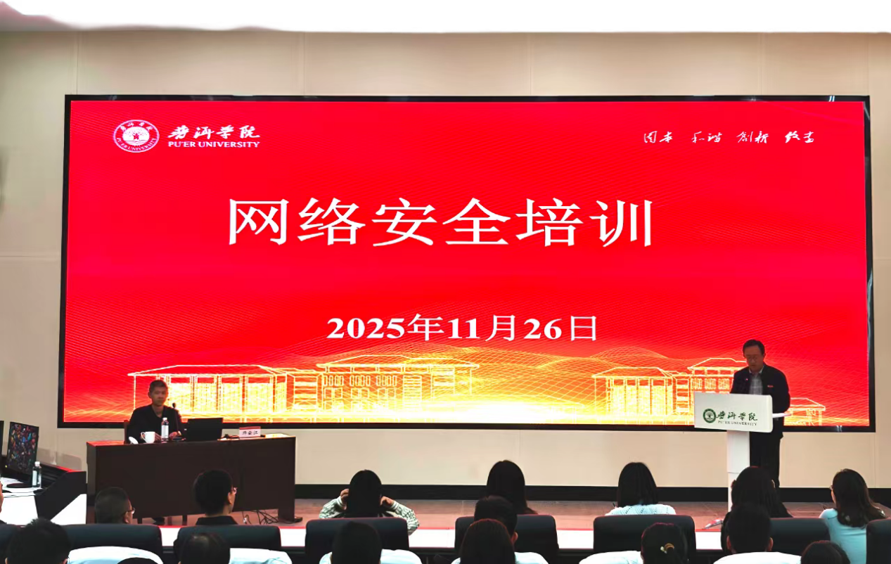为进一步夯实校园网络安全防线,全方位提高教职工的网络安全意识与防护实际操作技能,11月26日,普洱学院在数智运行中心举行网络安全专题培训,此次培训以“压实网络安全责任,提升安全防护能力”为主题,特邀普洱市委网信办副主任师云江主讲。