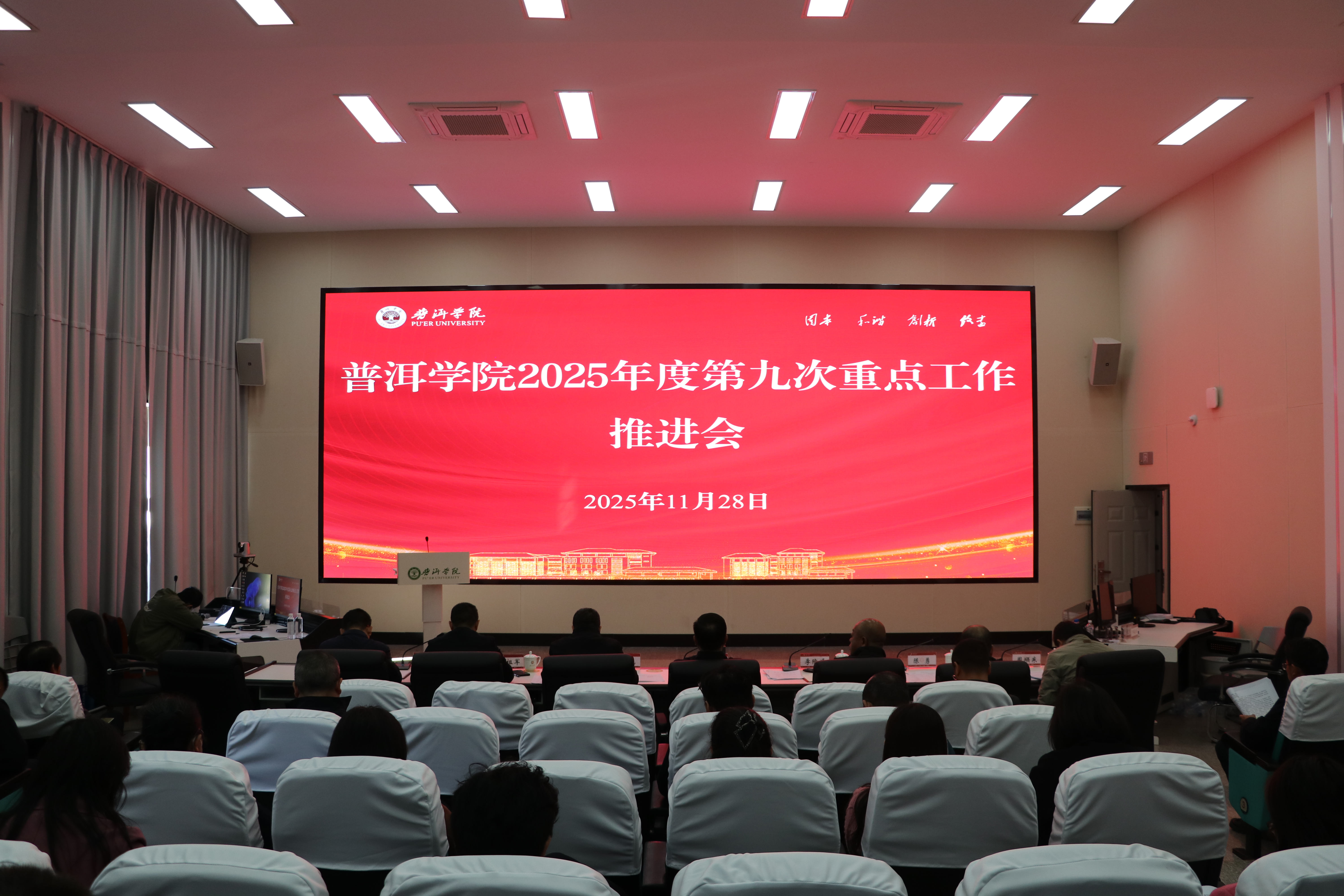 11月28日,普洱学院召开2025年度第9次重点工作推进会。党委书记胡国云出席并讲话,院长杨斌主持,党政领导班子成员出席会议。