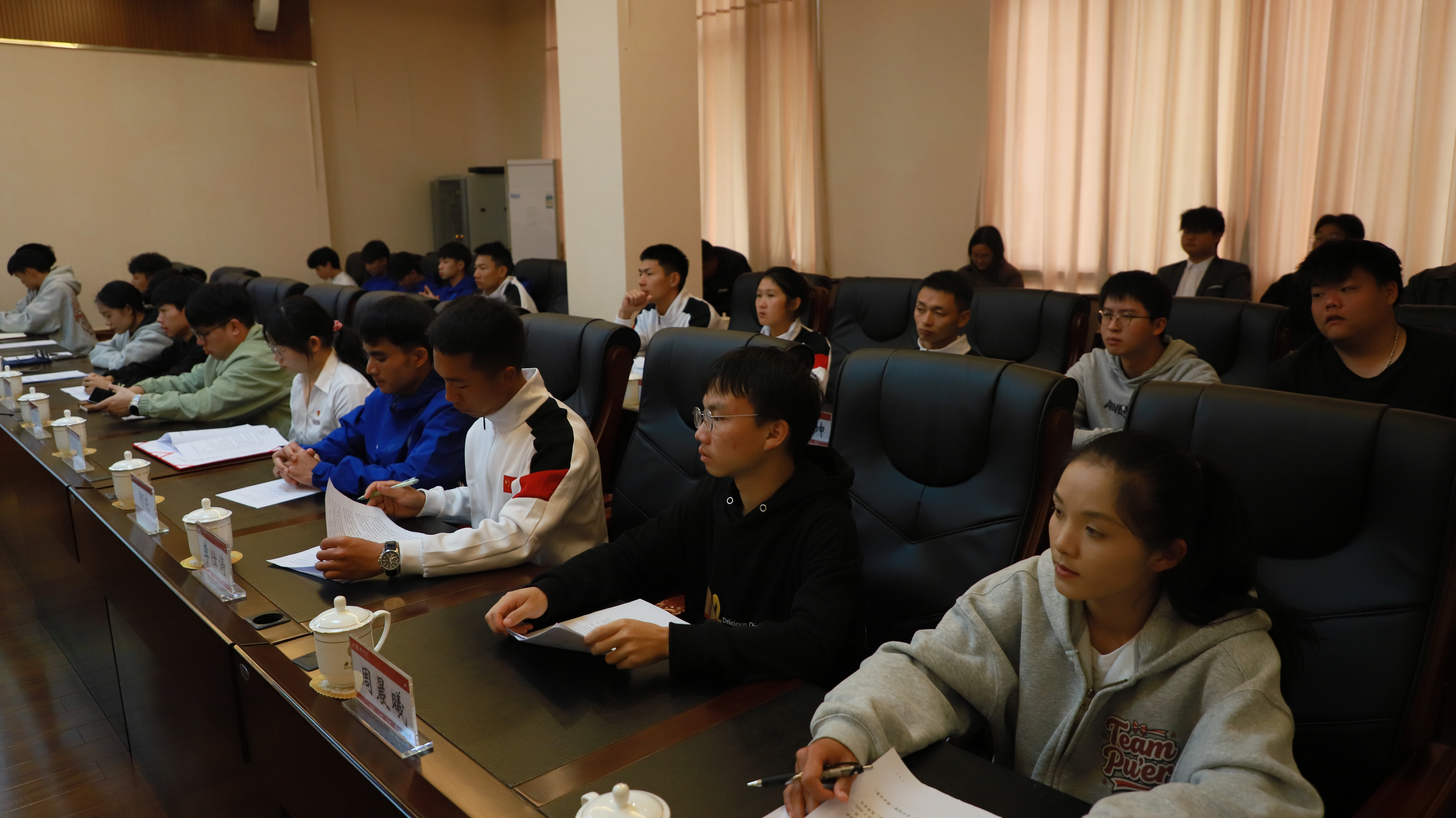 12月3日上午,普洱学院召开文体竞赛获奖团队代表座谈会。党委书记胡国云、党委副书记李险峰,相关职能部门负责人与民族啦啦操队、国防后备连(国旗班)、留学生足球代表队及艺术学院阳光合唱团、融媒体中心石榴花小队等获奖团队师生代表齐聚一堂,总结参赛经验,共话校园文体事业发展。李险峰主持座谈会。