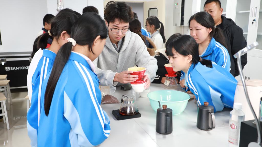 在咖啡冲泡体验区,来自茶叶咖啡学院的师生们与六顺学区的中小学代表展开了频繁而愉快的互动,大家通过亲手操作咖啡冲泡设备,深入体验从咖啡豆到一杯美味咖啡的全过程。这种互动不仅有效传播了丰富的咖啡文化知识,还为地方咖啡产业的未来发展培育了更多潜在的后备力量,充分体现了学校服务地方、回馈社会的责任与担当。