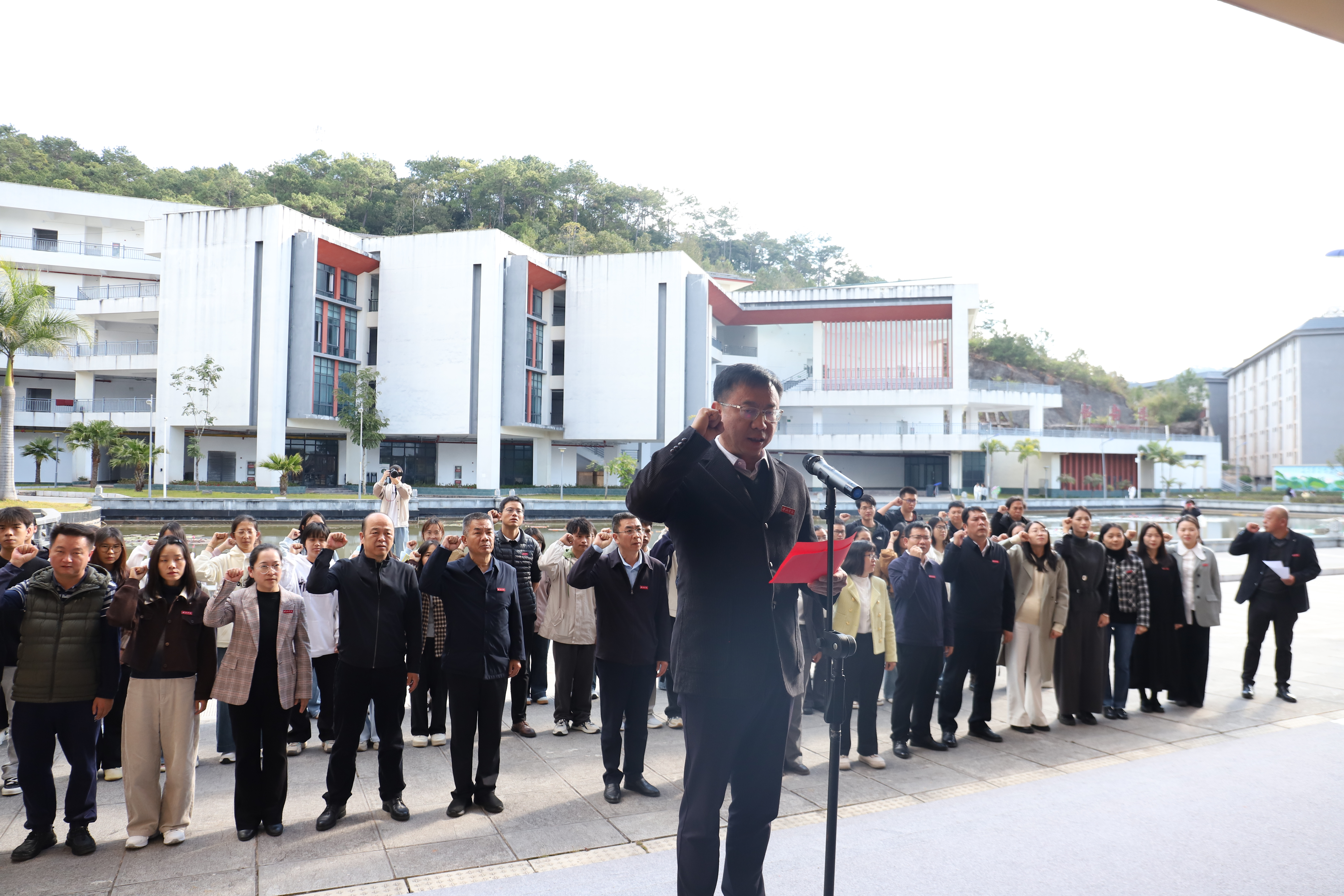 胡国云带领师生们进行了民族团结誓词宣誓。