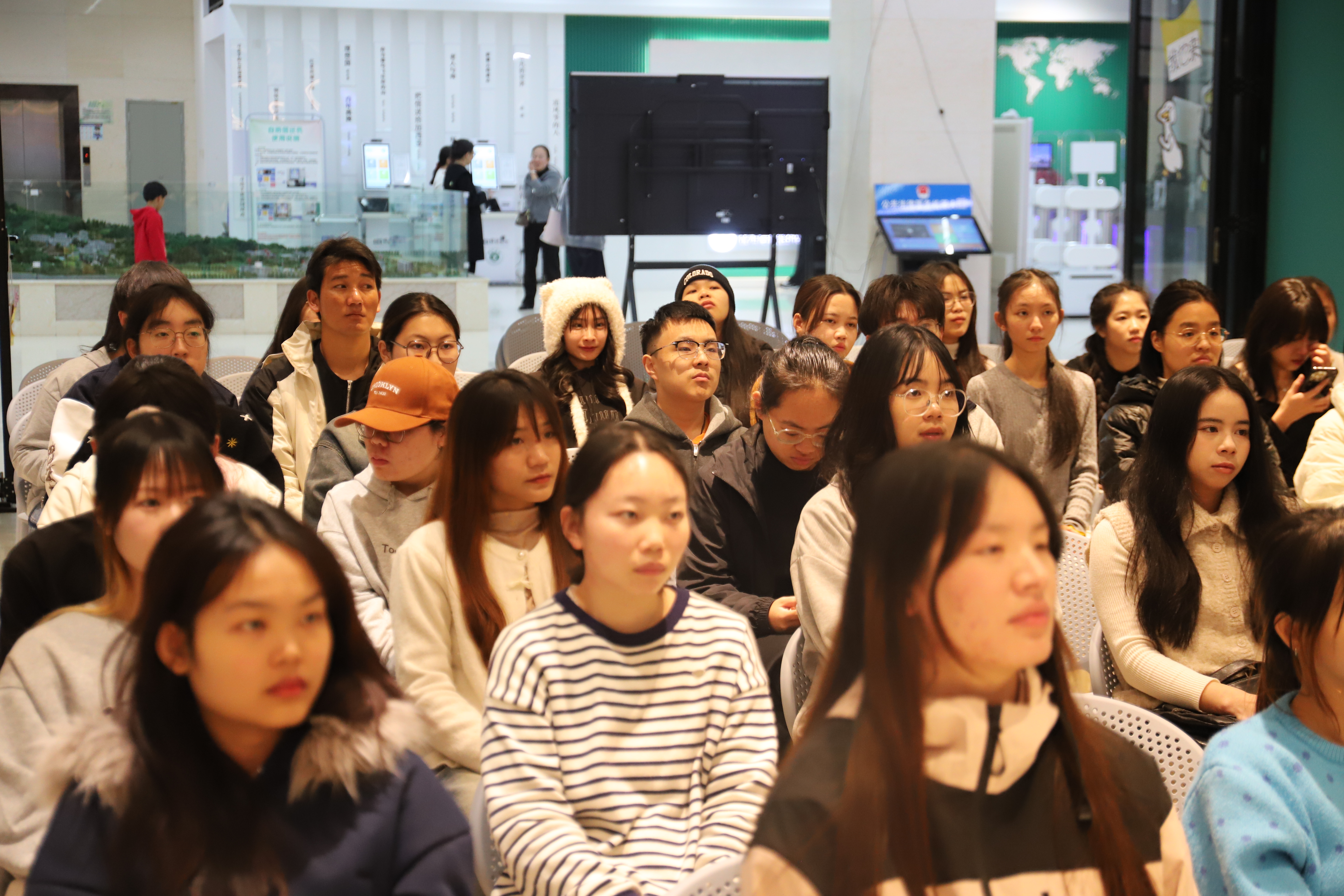 专题讲座结束后,师生们有序参观周恩来总理生平图片展。展览以时间为脉络,通过一张张定格历史的珍贵照片,分阶段呈现了周恩来总理从青年求学、投身革命到执掌政务、服务人民的人生历程,师生们在光影交错间直观感受伟人的坚定信念与崇高风范。最后大家集体体验了学院网络思想政治教育平台,该平台整合了丰富的红色学习资源,师生们通过线上浏览红色相关专题资料,进一步拓展了学习维度,实现了线上线下学习的有机融合。