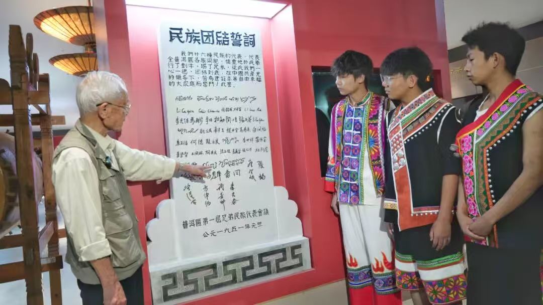 走进普洱学院,“石榴花开”的品牌标识随处可见。这一党建带团建品牌,正是该校民族团结进步创建工作的精神旗帜。学校充分挖掘“新中国民族团结第一碑”——普洱民族团结誓词碑的独特育人价值,创新开展“我们都是收信人”主题团日示范课,联合省内外高校打造《中华民族共同体概论》现场教学金课,让厚重的历史转化为鲜活的育人教材。