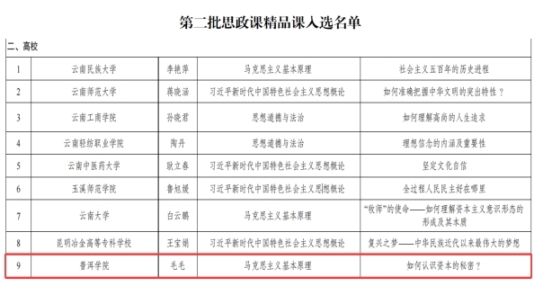 近日,中共云南省委教育工委公布了第二批云南省大中小学思想政治教育一体化建设项目入选名单,普洱学院4个项目获批立项。