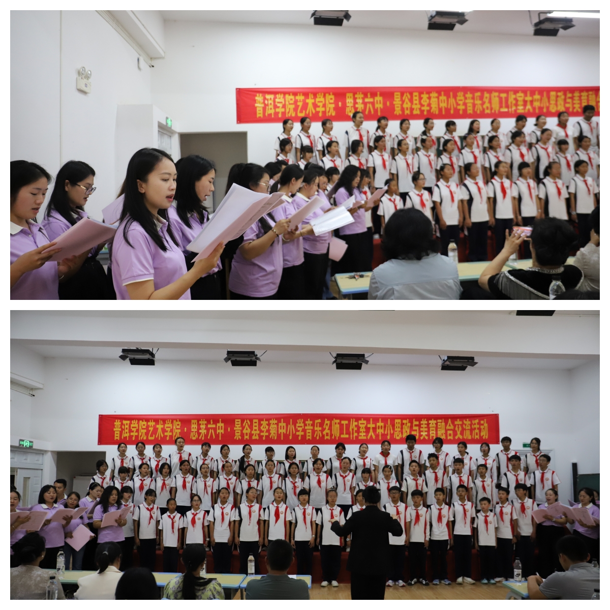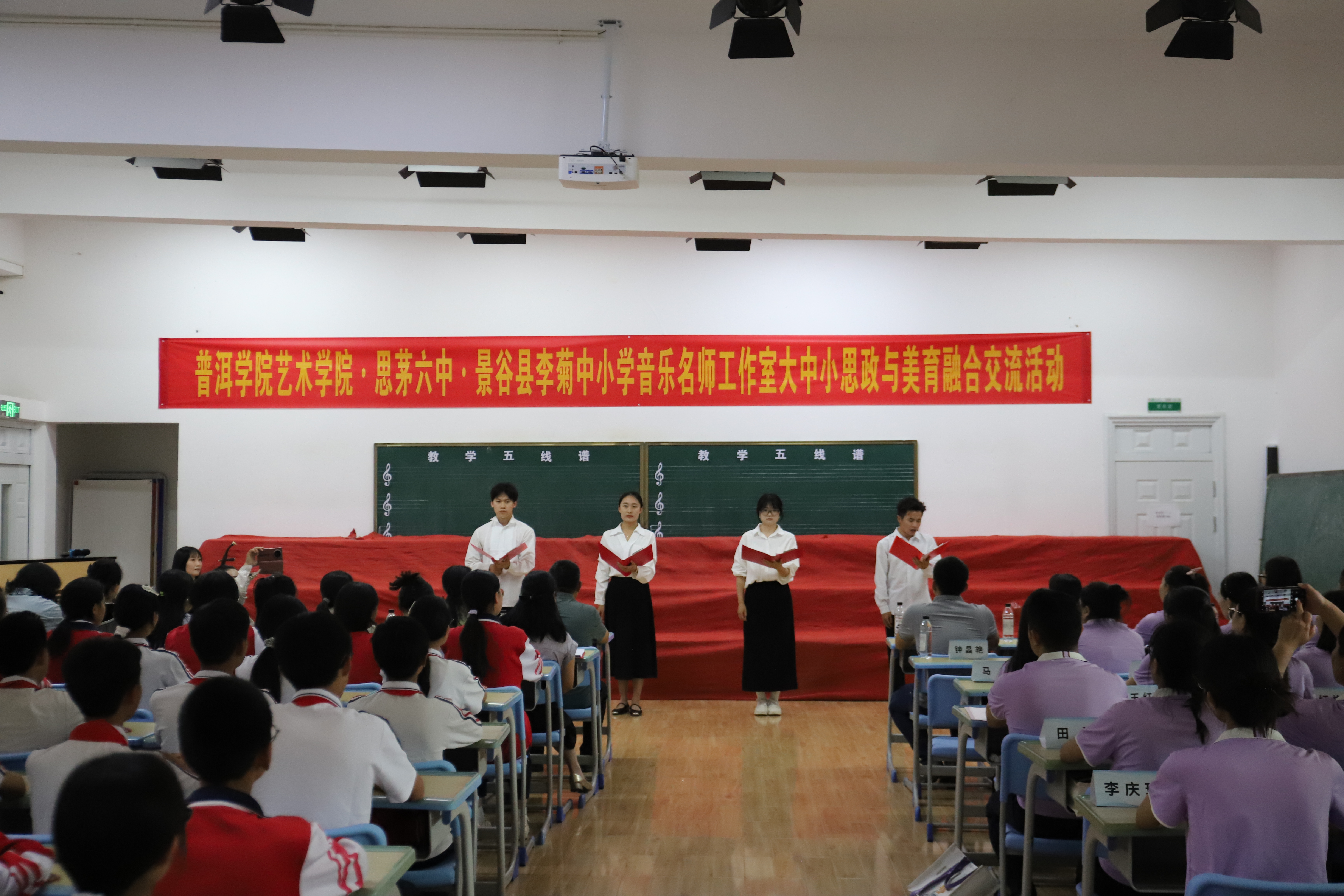 4月23日,美育浸润心灵,思政引领成长——大中小思政与美育融合交流活动走进普洱学院,思茅区第六中学师生、景谷傣族彝族自治县李菊中小学音乐名师工作室教师齐聚一堂,与普洱学院师生共同开展思政与美育融合的实践交流。