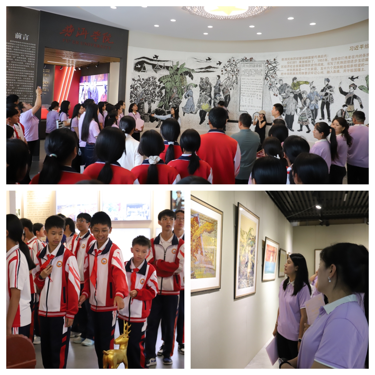 活动期间,全体参与人员参观了普洱学院铸牢中华民族共同体意识教育馆、民族团结盟誓塔思政教学场域,在图文、实物与场景的还原结合下,感受普洱各民族交往交流交融的鲜活案例,进一步强化了铸牢中华民族共同体意识;在绝版木刻精品馆,一幅幅兼具美感与思想的作品,展现了普洱民族风情与山水人文,让大家在赏美中感受背后的精神力量。