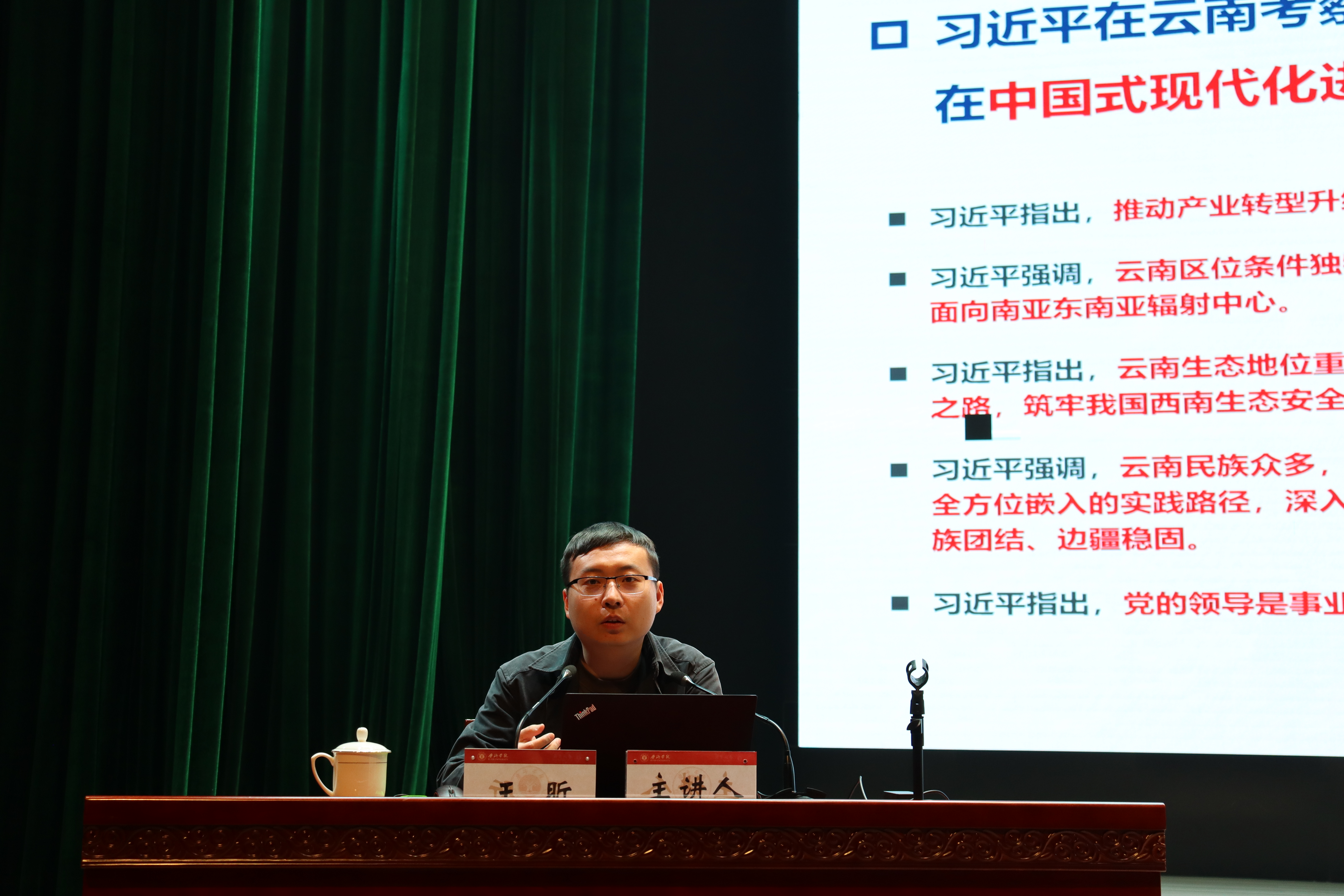 王昕以《弘扬劳模精神劳动精神工匠精神 凝聚新征程奋进力量》为主题,从理论高度剖析了“三种精神”的内涵与时代价值,并结合农加贵、蒋秋香、李辉等具象化的人物故事,激励普洱学院学子向榜样看齐,以工匠之心追求卓越,以劳动之姿书写人生华章,将精神滋养转化为奋进新时代的青春动能。
