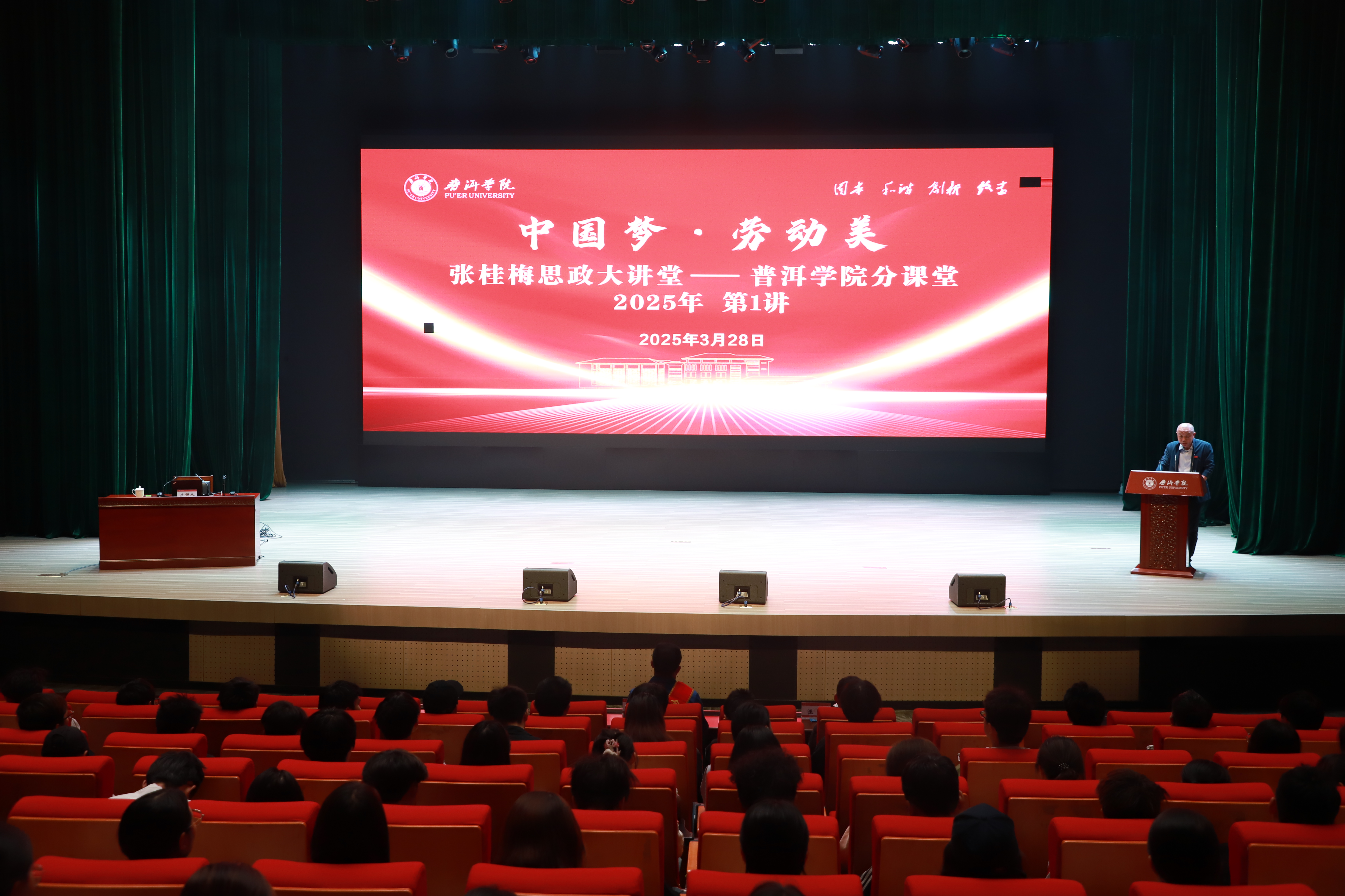 3月28日,普洱学院举办张桂梅思政大讲堂——普洱学院分课堂2025年第1讲暨“云南工人大思政课”2025年劳模工匠宣讲团“劳模工匠进校园”普洱学院专场活动,邀请“全国五一劳动奖章”“全国青年岗位能手”“全国优秀共青团干部”等获得者、普洱祖祥高山茶园有限公司党总支书记、工会主席、国家轻纺工程师(制茶工程)、普洱学院2007级校友张毓宾,云南省工会共青团妇联干部学校教师王昕,为师生上了一堂生动的思政课。普洱学院党委副书记李险峰主持。普洱学院“张桂梅精神”学习宣传小分队成员等师生代表600余人参加。
