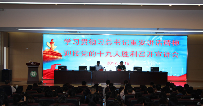为深入学习贯彻习近平总书记系列重要讲话和考察云南重要讲话精神,以优异成绩迎接党的十九大胜利召开,按照中共云南省委宣传部和高校工委的部署要求,学校邀请了省委宣讲团成员、省社科联副主席戴世平教授作学习贯彻习近平总书记系列重要讲话和考察云南重要讲话精神宣讲。6月16日上午,戴世平教授在学校图书馆学术报告厅作题为“深入学习贯彻习近平总书记系列重要讲话和考察云南重要讲话精神以优异成绩迎接党的十九大胜利召开”的报告,学校领导、副科级以上干部、马克思主义学院全体教师、教职工党员、师生代表400余人参加了报告会。报告会由党委副书记郑颖松主持。